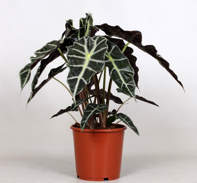 A Alocasia Polly é uma planta deslumbrante com folhas deslumbrantes verde-escuras, que realmente destacam as profundas veias branco-prateadas. As folhas podem atingir impressionantes 30 cm de comprimento, adicionando uma qualidade de design contemporâneo a espaços internos.