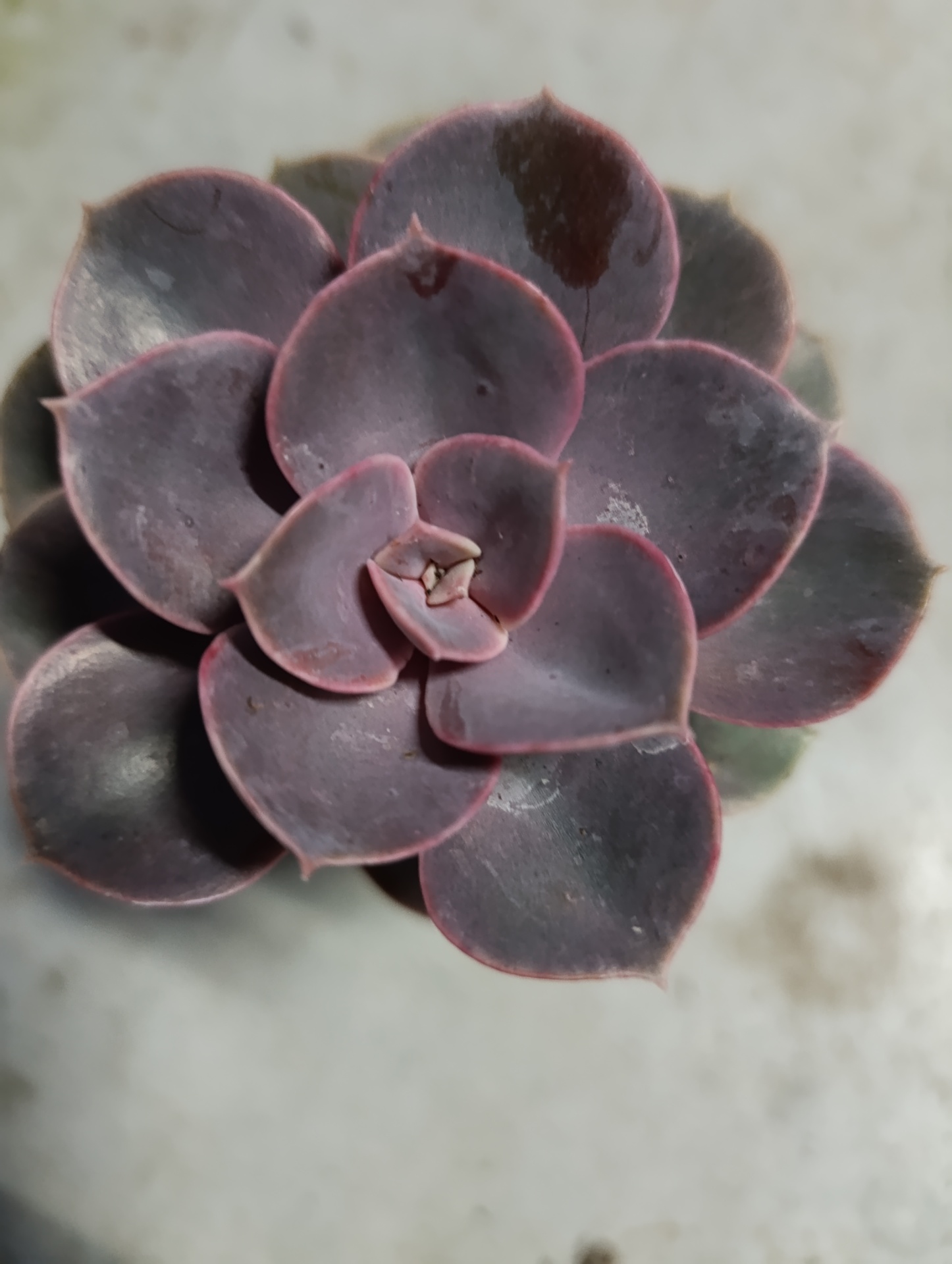 Suculenta roxa com folhas espessas em fundo claro