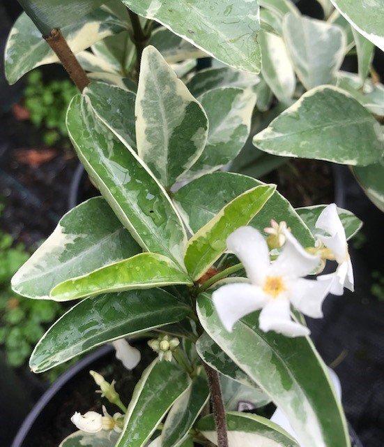 Esta elegante trepadeira perene produz lindas flores em forma de estrela. A folhagem verde matizada de branco brilhante do jasmim oferece o cenário perfeito para suas flores dramáticas que perfumam o ar com um aroma doce e irresistível. O jasmim floresce desde o final de abril durante todo o verão. Devido ao seu aroma maravilhoso, o jasmim também é frequentemente usado em perfumes.