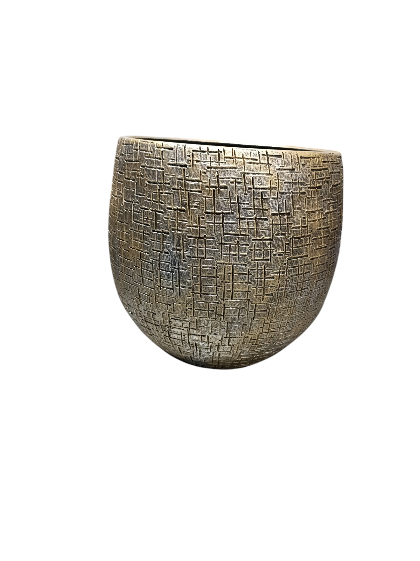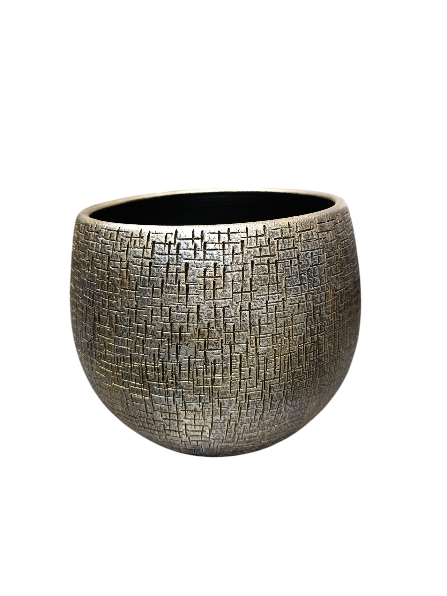Conjunto de quatro vasos redondos dourados texturizados com interior preto