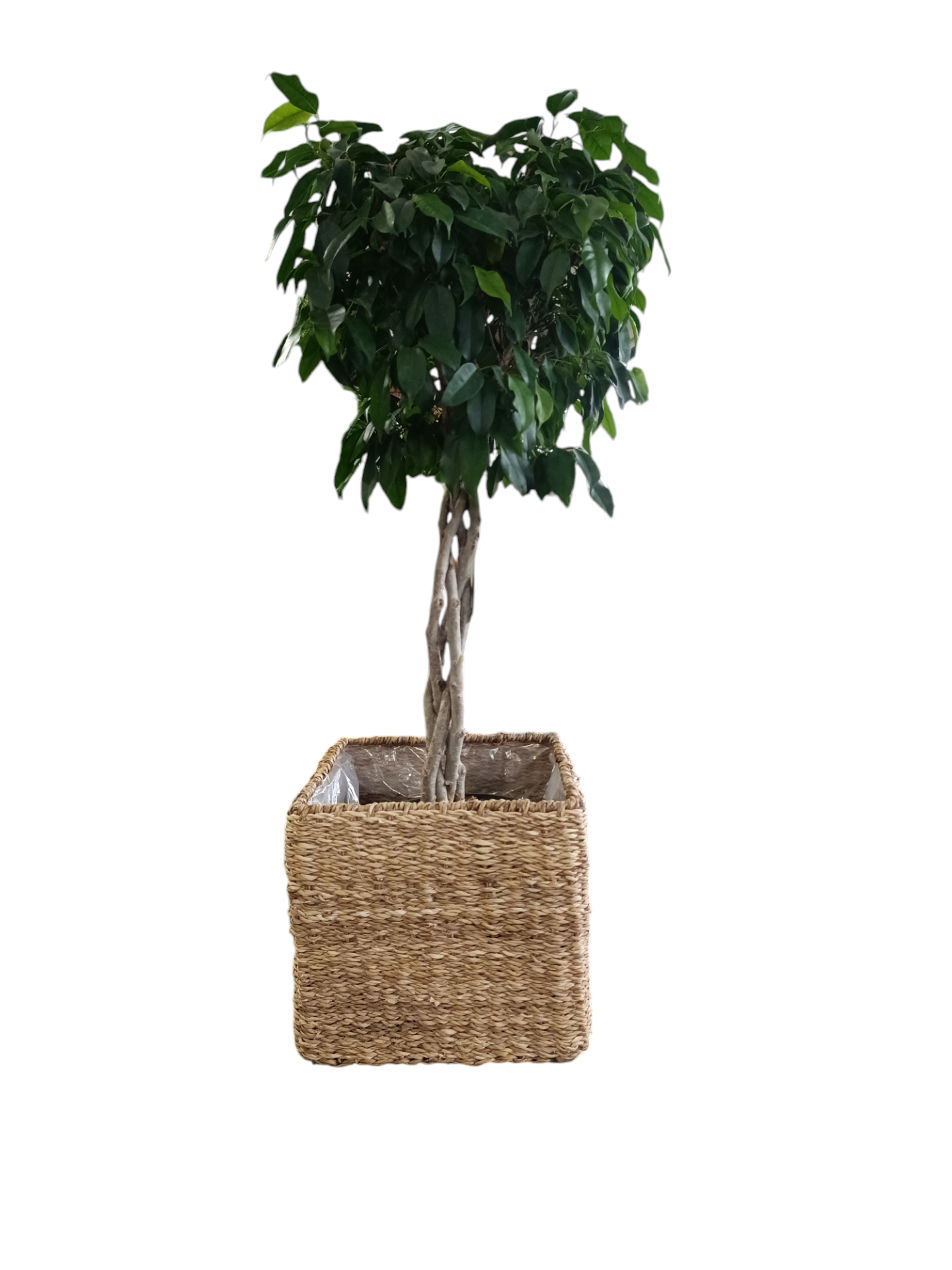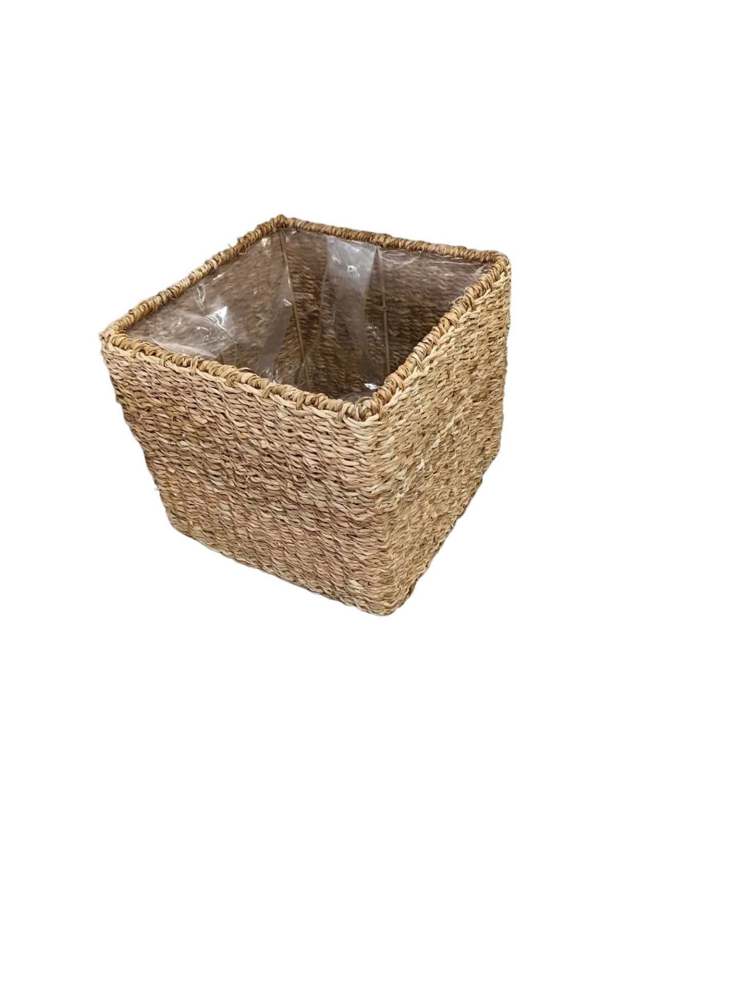 Cesto quadrado de fibras naturais com interior plástico transparente