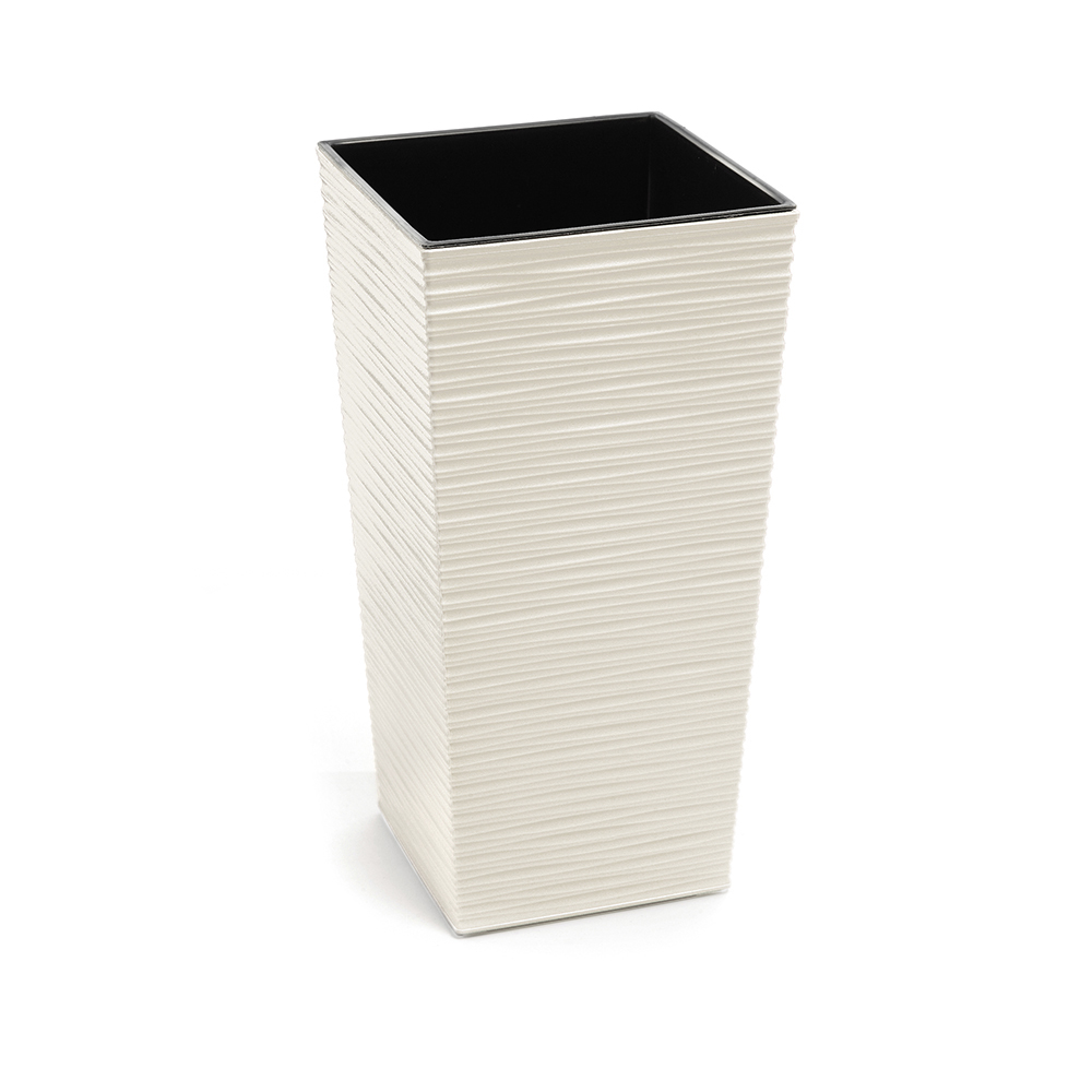 Cadeira azul moderna e vasos bege com plantas em terraço ao ar livre