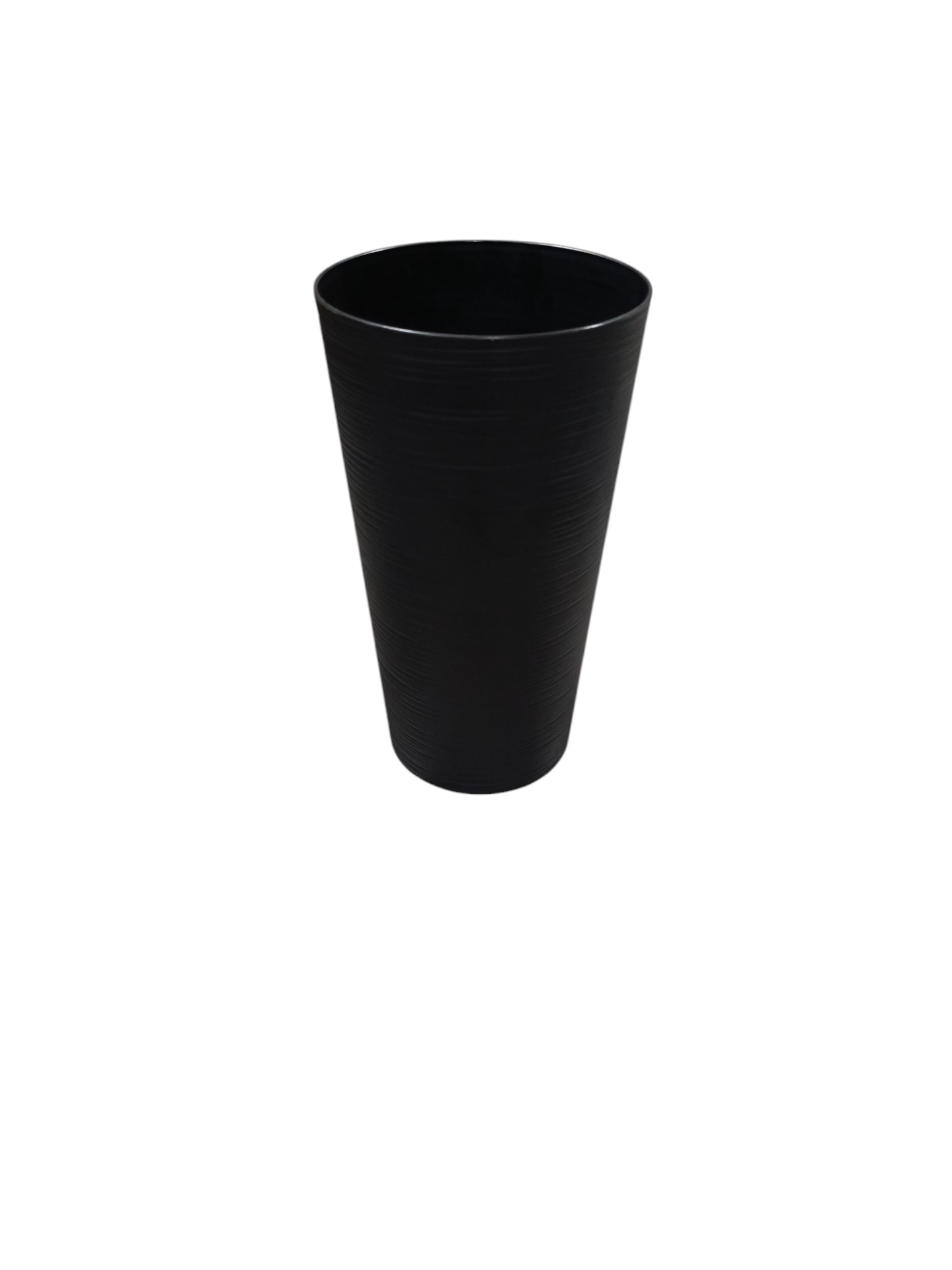 Vaso alto branco com interior preto e textura em linhas horizontais