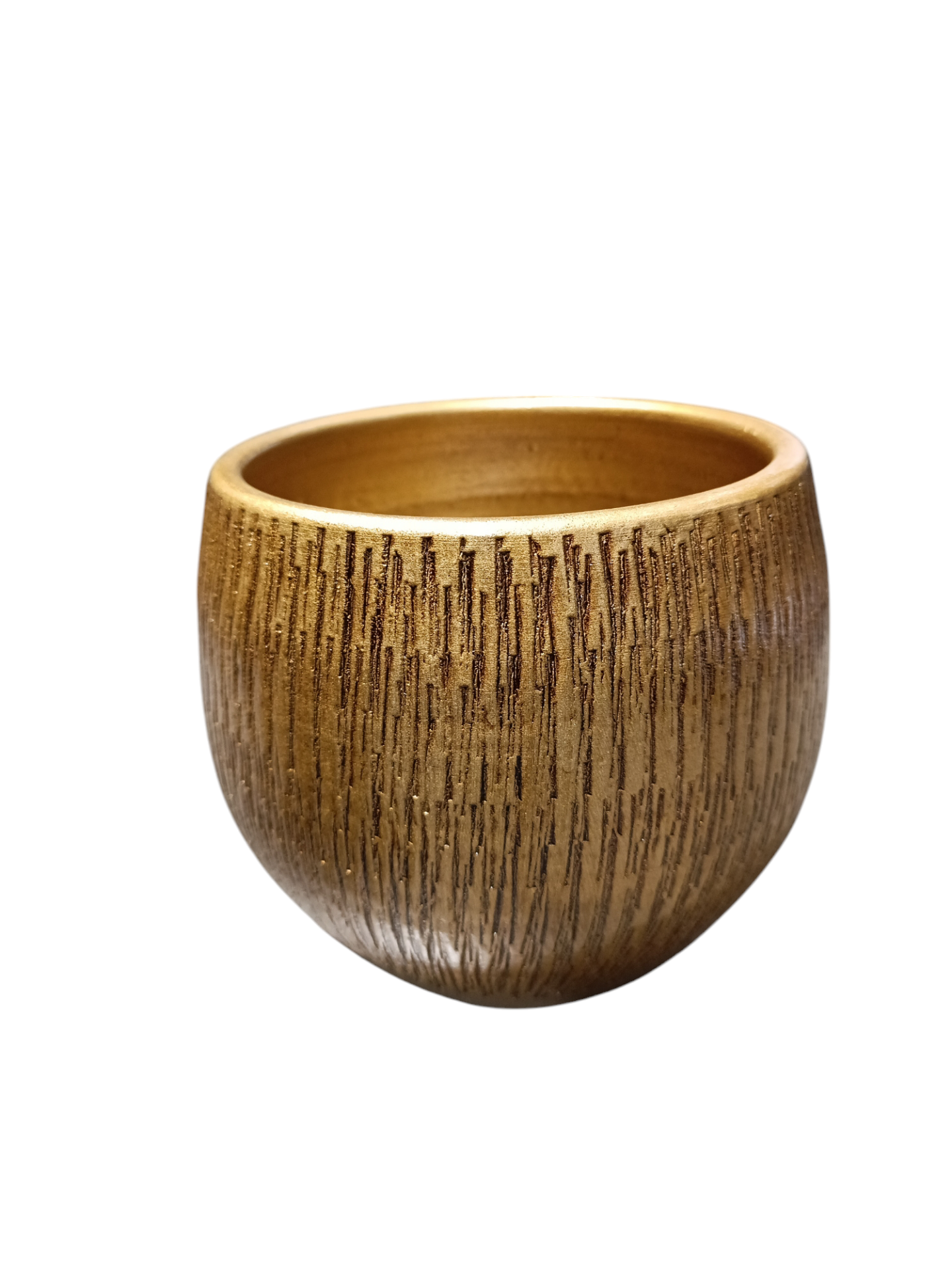 Vaso pequeno dourado com textura riscada