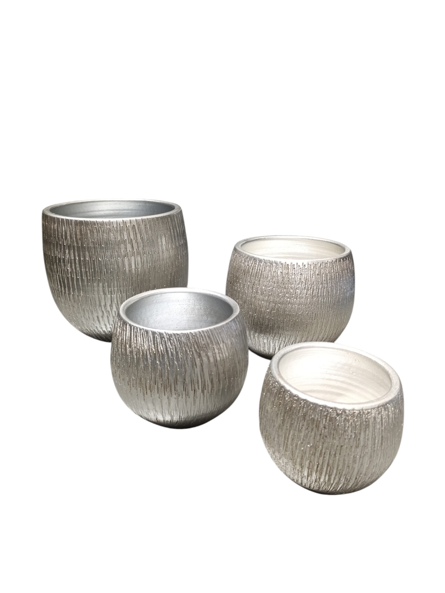 Conjunto de quatro vasos de cerâmica texturizados em tons neutros